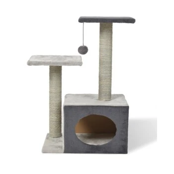 - Kompakter und funktioneller Kratzbaum mit Bereichen zum Klettern, Spielen und Ausruhen.