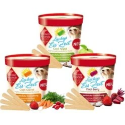Gemeinsam mit dem Hund ein Eis schlemmen? Wir machen es möglich! Mit unserem ChronoBalance Hunde-Eis in den Sorten Cool Carrot, Cool Apple und Cool Berry bieten wir dem Hund nicht nur eine angenehme Abkühlung an warmen Tagen, sondern versorgen ihn oberndrein auch mit Mineralien, Spurenelementen und B-Vitaminen.