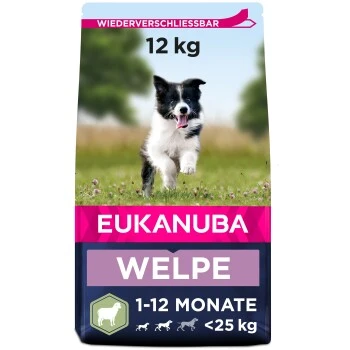 Die im Welpenfutter enthaltene Fettsäure DHA trägt entscheidend zur Entwicklung der Nervenbahnen des Gehirns bei und hilft dem Welpen seine kognitiven Fähigkeiten auszubilden. Außerdem enthält die Rezeptur Kalzium, welches das optimale Gelenk- und Knochenwachstum fördert. Die maßgeschneiderte Ballaststoffmischung aus Präbiotika und klinisch erprobten Rübenschnitzeln fördert eine gesunde Verdauung. Huhn dient als weitere Proteinquelle und unterstützt den Aufbau einer kräftigen, fettarmen Muskulatur. Zusätzlich ist in dem Eukanuba Trockenfutter L-Carnitin enthalten. Dieses unterstützt die Reduktion des Körperfetts.