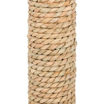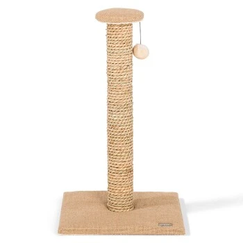 Der Kratzbaum Harmony ist ein einfacher, aber grundsolider Kratzbaum. Der Stamm ist mit Wasserhyazinthe umwickelt. Dieses Material wird von Katzen sehr gerne angenommen. Eine sehr robuste Faser, die der Katze hilft, die schuppige obere Schicht von ihren Krallen zu entfernen. Die Bodenplatte ist herrlich weich. Oben am Kratzbaum befindet sich ein Spielball, der Ihre Katze zum Spielen und Toben auffordert.