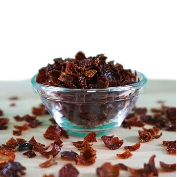 Hagebuttenschalen aus kontrolliert biologischem Anbau. Reich an hochwertigem Vitamin C, Fruchtsäuren, Pektinen und Carotinoiden.