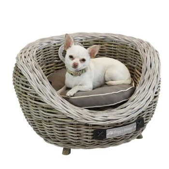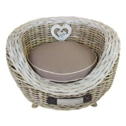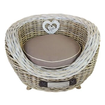 Der Liegeplatz aus Rattan besticht mit seinem eleganten Design, das sich problemlos in alle Einrichtungsstile einfĂŒgt. Das white-washes Rattan macht das Sofa zum Eyecatcher und das eingeflochtene Herz verleiht diesem Liegeplatz ein romantisches Detail. Das reich gefĂŒllte Liegekissen schĂŒtzt sicher vor unangenehmer BodenkĂ€lte und bietet Ihrem Vierbeiner höchsten Liegekomfort. Das verwendete Kooboo Grey Rattan, das man von der Verarbeitung in Gartnenmöbeln kennt, machen diesen Liegeplatz robust und langlebig.