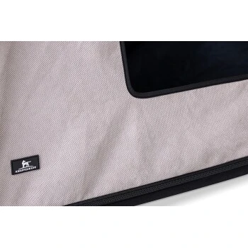 Die Hundehöhle ist als Erweiterung für Hundebetten oder Hundematten konzipiert und verleiht dem Bett mit ihrem Zeltcharakter eine gemütliche Wohlfühlatmosphäre.