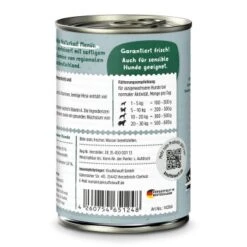 Unsere Knuffelwuff Naturkost Ente mit Hirse und Spinat stellt eine garantiert vollwertige, frische und vitaminreiche Kost für deinen Knuffel dar. All unsere Zutaten dürfen nur den allerhöchsten Lebensmittelstandards entsprechen und garantieren somit auch für sensible Fellnasen eine optimale Ernährung. Unser Premium-Futter kommt ohne künstliche Aromen-, Farb- und Konservierungsstoffe aus und ist aufgrund seiner hochwertigen Zutaten nicht nur überaus lecker, sondern dank der wertvollen Proteine, Nährstoffe, Kohlenhydrate, Mineralien und Spurenelemente vor allem auch sehr gesund. Ebenso sind die Knuffelwuff Futterdosen getreide- und glutenfrei. Denn schließlich verfolgen wir eine unverkennbare Philosophie: