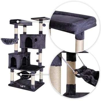- KOMFORTZONE FÜR IHRE KATZE. Dieser Katzenkratzbaum aus weichem Plüsch und umfassenden Beschäftigungsmöglichkeiten schafft die ideale Umgebung für jede Samtpfote. Der Kratzturm garantiert artgerechtes Spielen, Ausruhen und Verstecken. Die Abwechslung zählt!
