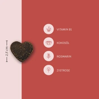 Diese Snacks nehmen hohem Gras und dichten Wäldern den Schrecken: Mit Probiotika, natürlichen Mikronährstoffen, B-Vitaminen und ätherischen Ölen schaffen sie ein ideales Hautmilieu und geben euch die Freude am Spazierengehen in der Natur zurück. Von Tierärzten entwickelt und unwiderstehlich lecker!