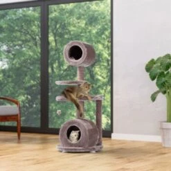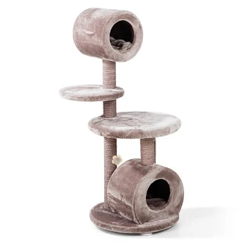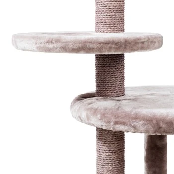 Katzen haben einen ausgeprägten Spieltrieb. Und mindestens ebenso gern ziehen sie sich auf einen höher gelegenen Aussichtsplatz oder in eine kuschelige Höhle zum Entspannen zurück. Der MORE FOR Kratzbaum Jive verbindet Spiel- und Kratzmöglichkeiten mit behaglichen Liegeplätzen.