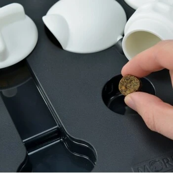 Das Modell Tricky ist eine wirkliche Herausforderung für dich und deinen Vierbeiner. Verstecke Snacks, die dein Hund anschließend suchen soll, unter den weißen Kappen und Drehelementen. Er wird lernen, dass er mit Hilfe seiner Zähne die Kappen hochheben oder diese mit seinen Pfoten bzw. der Schnauze umkippen kann, um an seinen Belohnungshappen zu gelangen.