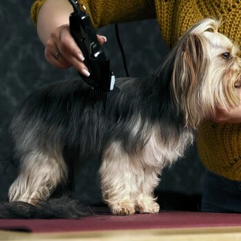 Scheren / Trimmen: Das Tier soll individuell nach seinem Felltyp und der Rasse gepflegt werden. An die gewünschte Schnittlänge herantasten, zum Beispiel mit unterschiedlichen Aufschiebekämmen, von groß nach klein, vorerst an einer verdeckten Stelle testen.