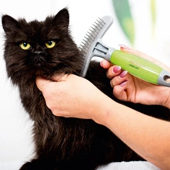 Der Unterwollrechen ist perfekt für Langhaarrassen (Hund & Katze) mit Unterwolle geeignet. Dank der drehenden Metallpins wird das Fell effizient entwirrt und die doppelreihige Zahnung sorgt für ein maximales Ergebnis beim Entfernen der Unterwolle. Der ergonomische Gelgriff bietet höchsten Komfort.