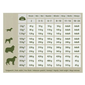 Alleinfuttermittel für Welpen und Junghunde vom Absetzen bis zum 12. Monat.