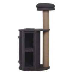 Der Kratzbaum Louis von Petliving lädt zum Klettern, Krallenwetzen, Spielen und Entspannen ein. Der Kratzbaum besteht aus einer Tonne, welche mit hochwertigem und robustem Material aus der Möbelindustrie bezogen ist. Der Stoff besteht aus 100 % Baumwolle und ist zugleich wasserabweisend. Die verwendeten Stoffe sind schadstoffgeprüft nach Öko-Tex 100 Standard. Die Tonne besitzt einen großen Eingang für die beiden Liegeflächen. Die obere Aussichtsplatt hat noch eine zusätzliche Öffnung um ins Innere gelangen zu können. Von der oberen Liegefläche kann alles genau beobachtet werden. Alle Kissen sind herausnehmbar und können beliebig getauscht werden. Alle Bezüge sind abnehmbar und bei 30° C in der Maschine waschbar. Der Kratzstamm sowie die Tonne bestehen aus Holz(teile) -reste aus der Möbelindustrie und sind dadurch besonders stabil und robust. Mit natürlichem Sisal umwickelt lädt er zum Krallenwetzen und zur Krallenpflege ein. Das Kissen auf der oberen Plattform ist besonders gemütlich und für den wohl verdienten Komfort gut gepolstert. Für den sicheren Halt ist das Kissen mit Klettverschluss fixiert.