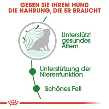 ROYAL CANIN Mini Ageing 12+ in SoĂźe ist fĂĽr Hunde ab dem 12. Lebensjahr mit einem Gewicht von bis zu 10 kg geeignet und wurde speziell auf die BedĂĽrfnisse kleiner Hunde abgestimmt.