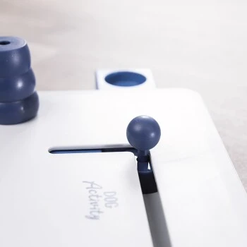 Hunde sind sehr intelligente und wissbegierige Tiere, welche nicht nur körperlich durch Spielen und Training, sondern auch geistig beschäftigt und herausgefrodert werden wollen. Durch den robust, aus Kunststoff gefertigten Dog Activity Move2Win von Trixie, können Sie Ihren Hund immer wieder von neuem fordern und durch das gemeinsame Spielen und Trainieren die Bindung zu Ihrem Liebling stärken. Das Brettspiel lässt sich gaz einfach mit kleinen Snacks oder Leckerlies befüllen, welche Ihren Hund zum Spielen annimieren. Durch Öffnen der Schubfächer, mit Hilfe der Schlaufen, bzw. durch Verschieben der jeweiligen Stempel, gelangt er an seine Belohnung. Nutzt man innerhalb des Spiels die Kegel als Stopper, lässt sich der Schwierigkeitsgrad steigern. Die inetgrierten Gummifüße machen das Brettspiel zudem äußerst standfest und verhindern somit ein Wegrutschen während des Spiels.